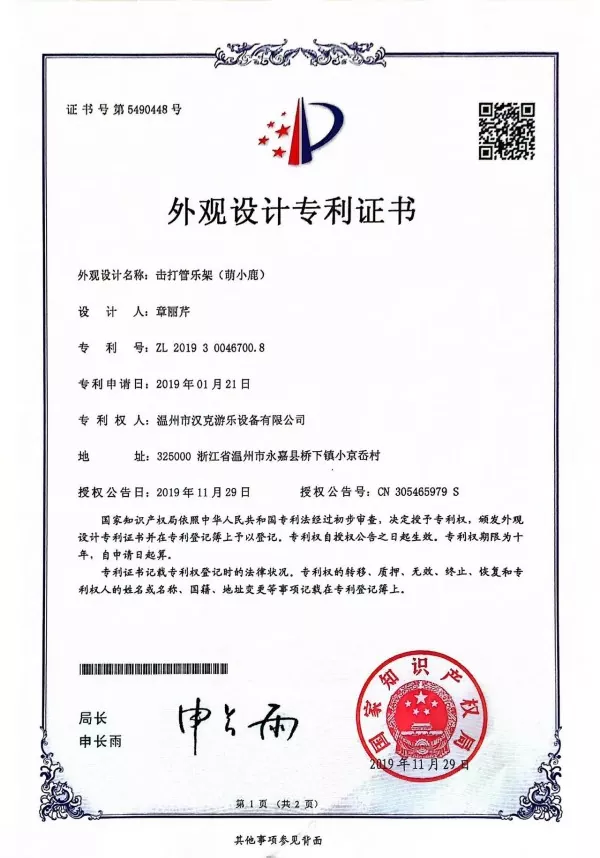 Ударный инструмент в форме жирафа является продуктом серии Hank's Kacalol, основной промо-акции Хэнка. В сериале много милых мультяшных дизайнов, и жирафы — один из них. Каждый продукт серии запатентован в Китае. Панель жирафа изготовлена из одиннадцати алюминиевых трубок, маленьких и симпатичной формы, что делает ее очень подходящей для маленьких детей.