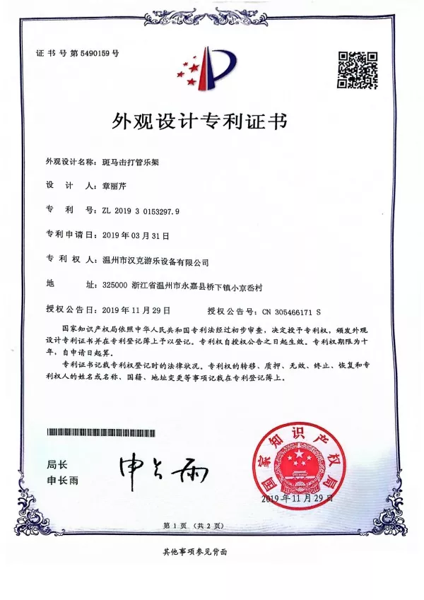 В то же время, поскольку мы являемся запатентованным продуктом Хэнка, в 2019 году мы подали заявку на патент на дизайн подставки для ударных инструментов в форме зебры и получили одобрение Китайского ведомства интеллектуальной собственности.